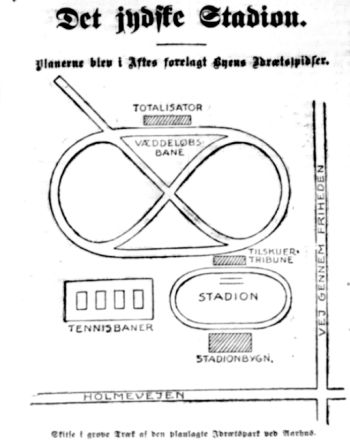 Den første plan for det kommende stadion fra 1916 inkluderede en væddeløbsbane til galop og travløb, formet som en sløjfe, der tillod forskellige former for sportsbegivenheder. Planen omfattede også baner til cricket, hockey og fodbold. Stadionet skulle fungere som centrum for jysk idræt og sportsentusiasme, som ville rumme løbebaner, kraft- og springbaner samt totalisatorbygning.