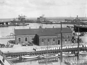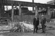 I 1968-69 blev det nye spaltgasværk opført, og kulbroen i baggrunden blev dermed overflødig, idet kranen på broen ikke længere skulle bruges til at skovle kul og koks. Fotograf: Ib Rahbek-Clausen, 1968, Århus Stiftstidende, [[Rigsarkive...