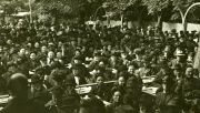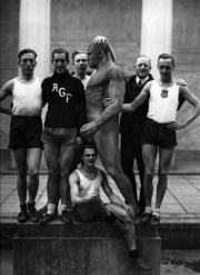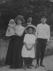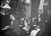 Familien Knub i hjemmet i Gothensgade 141 i København. Til venstre Georg Nikolaj Knub ved klaveret. December 1905, foto taget af Harder, Knubs billedsamling, Rigsarkivet Aarhus, leveret af Aarhus Stadsarkiv