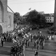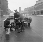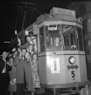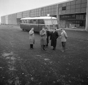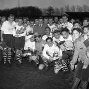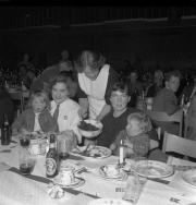 Til "Jul for juleløse" på rådhuset 24. december 1956 var blandt andre Bodil Robertsen (tv.) og Mary Lindvald (th.) frivillige gennem DKB - Danske Kvinders Beredskab. På billedet får de et par unge deltagere til at sidde stille. ...