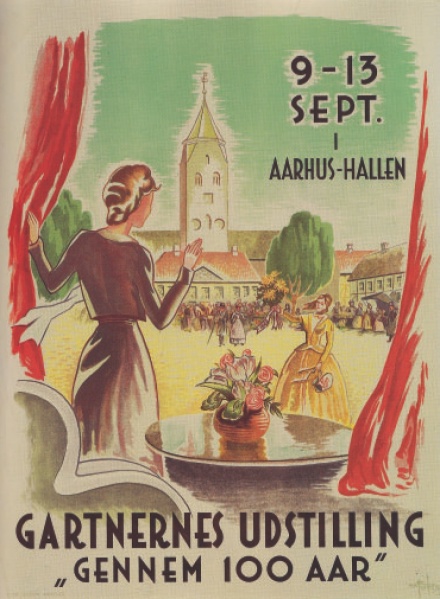 Marinus Fiskers plakat til Gartnernes Udstilling i Aarhus-Hallen, 1942 - Foto fra Århus Byhistoriske Udvalg, Århus på plakaten 1993