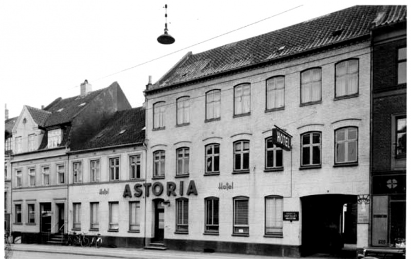 Version fra 22. jul. 2018, 13:03 af Kurt L (diskussion | bidrag) Kurt L (diskussion | bidrag) (Hotel Astoria, senere Eriksens Hotel, Banegårdsgade 4-6. 1953 - Foto: Hammerschmidt. danskebilleder.dk)