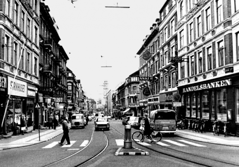 M.P. Bruuns Gade. Set fra Skt. Pauls Kirkeplads 1966 - Foto: Børge Venge. danskebilleder.dk