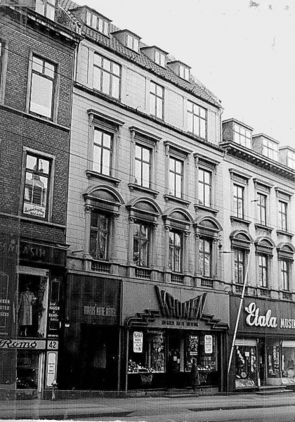 Version fra 5. aug. 2018, 15:42 af Kurt L (diskussion | bidrag) Kurt L (diskussion | bidrag) (M.P. Bruuns Gade 44. Kronen Kaffe. Ca. 1960 - Foto: Aarhus Kommune Bygningsvæsenets Sekretariat)