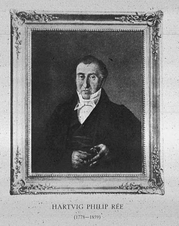 Portræt af Hartvig Philip Rée fra bogen "Hartvig Philip Rée og hans slægt" af Joseph Fischer, udgivet ved Hertz's Bogtrykkeri. Ukendt kunstner. Affotografering: Rigsarkivet.