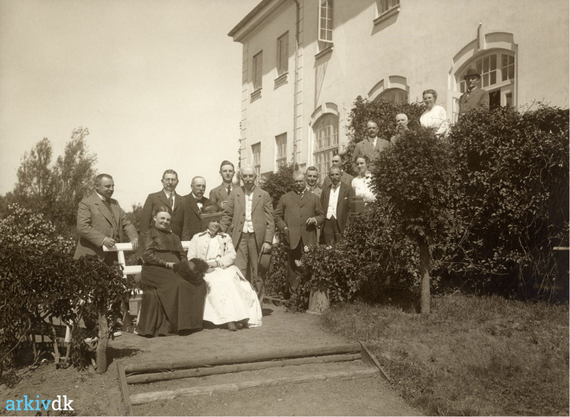 Selskab af amtmænd og familien Bardenfleth i haven bag Amtsgården i Vedelsgade 17, Vejle.