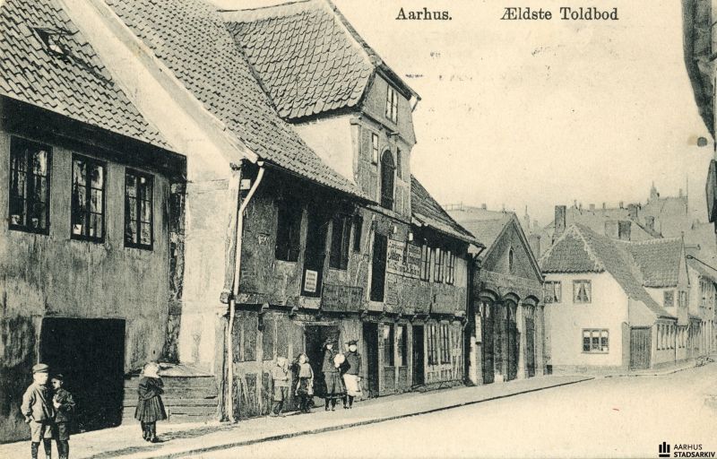 Aarhus' ældste toldbod i Aagade 14. Fotograf: Hans Andersen Ebbesen, ca. 1900, Aarhus Stadsarkiv.