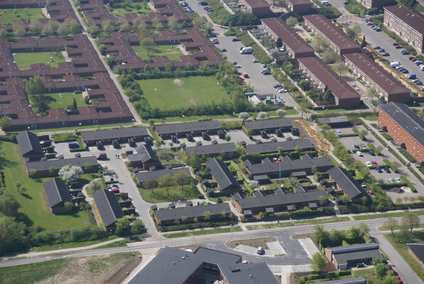 Arbejdernes Andels Boligforenings ejendomme på Sandkåsvej i Herredsvang. Foto: Kruse Luftfoto, 2007, Aarhus Stadsarkiv.